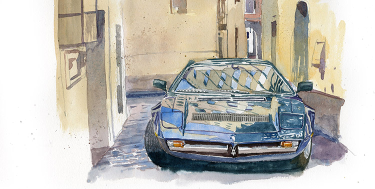細く、美しく、繊細な。1975年、パリ・サロンで発表された2シーターのミッドシップ・スーパーカー。美しいラインをもつクーペボディのスタイリングは、ピニンファリーナによるもの。